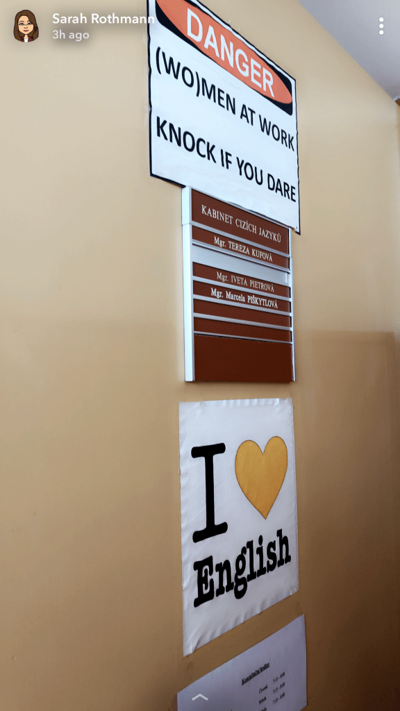 During my first day of teaching, I gave a presentation about myself – introducing myself, Fulbright and my position, my family, hobbies, schooling, and plans for the year. I gave this 45-minute presentation a total of 10 times this week – to a group of different students each time and with each presentation I was faced with a new set of successes, challenges and little triumphs. I found myself nervous about small aspects of the lesson such as logging onto the computer, turning on the projector, and reading PowerPoint buttons in Czech. All seemingly minor details but large enough that they could make or break the lesson.