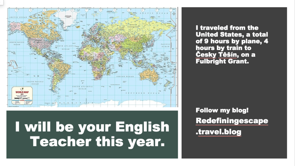 During my first week of teaching, I gave the same 45-minute presentation about myself and my plans for the year to all of my classes. I talked for roughly 40 out of the 45 minutes, briefly asking if students had any questions after each slide and then I left the final 5 minutes for questions about the entire presentation. The students smiled and even giggled as I appeared very energetic and enthusiastic while hoping to express to them my approachability and eagerness to learn how to communicate with them effectively this year. Since I was on the boating trip in Česky Krumlov last week, I had yet to see my Monday and Tuesday classes and meet those students. Therefore, I gave the same presentation about myself as my first Monday lesson this week and, for the first time since being here, was given some feedback and advice about how to structure lessons for Czech students who are learning a language that is not familiar to them.