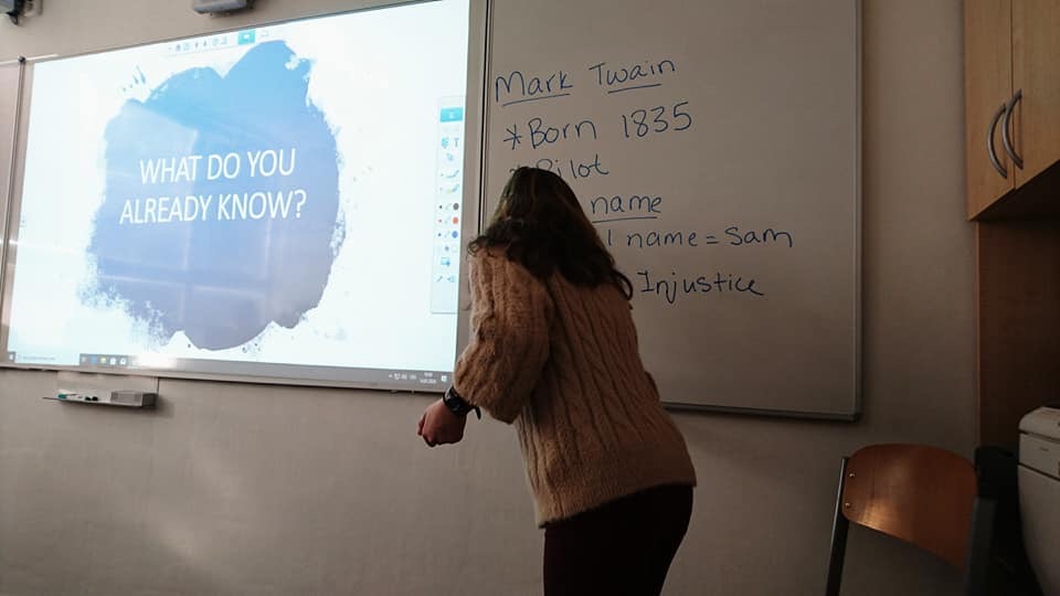 Me teaching my Maturita students about Mark Twain and Tom Sawyer.