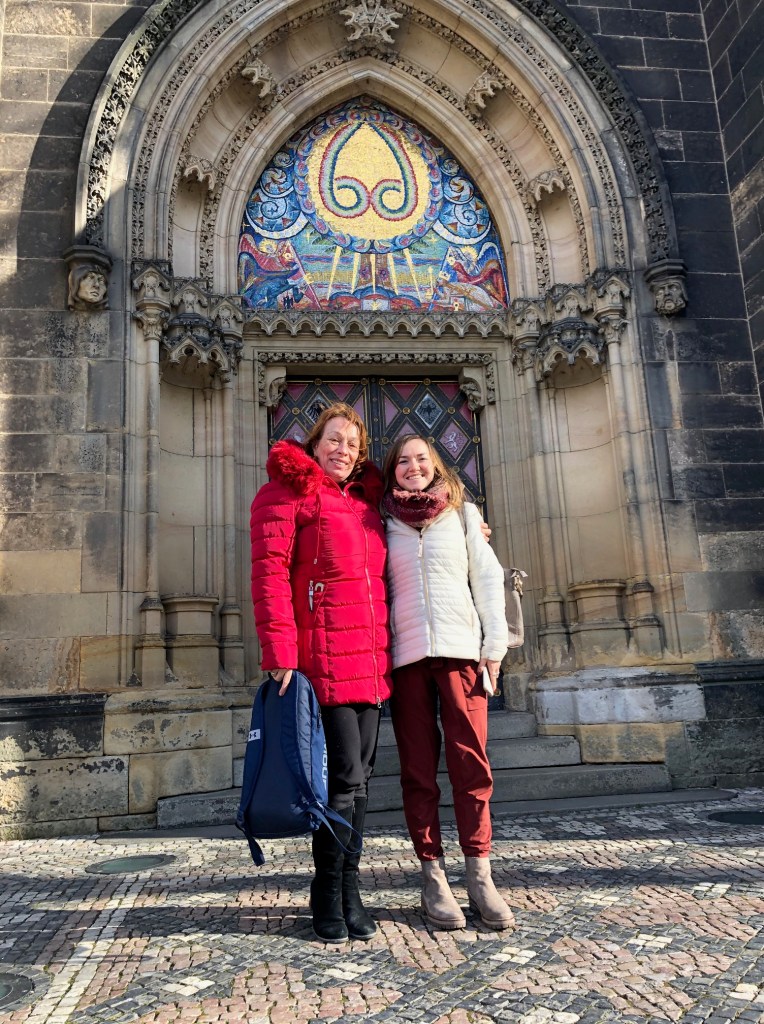 Finally, I am now headed back to the US as the gymnasium is on a spring holiday next week. Since I am flying out of Prague, and Prague and Česky Têšín are so far apart, I headed to Prague a day before my flight. I traveled with a friend and colleague from the primary school in Ostrava and together we visited Vyšehrad cathedral and cemetery. With this visit, I was convinced that Prague is always a perfect pit stop for me before travel because I have found that every time I visit this enormous city, I gain a deeper appreciation for the depth of history, beauty, and art that it has to offer.